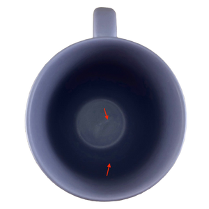 Condition note: this mug has no chips, cracks, scratches, stains or crazing. There is a faint white curved line inside this mug on its bottom surface. There is a bit of a white appearance inside this mug on its lower walls, it's subtle. Please see the 5th photo where red arrows are pointing to these 2 minor items.