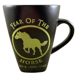It features an etched horse inside an etched circle on its front surface with "YEAR OF THE" etched above it and "HORSE" etched below it. Beneath this is etched "2014 2002 1990"