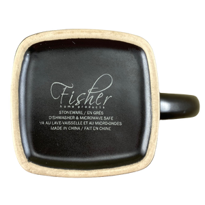 This mug has a round mouth and a square base.
