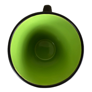 There are a few minor imperfections on the black exterior surface that were discovered while inspecting this mug with an LED lit magnifying lens.