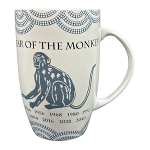 This is a tall mug that features artwork on its front surface depicting the YEAR OF THE MONKEY.