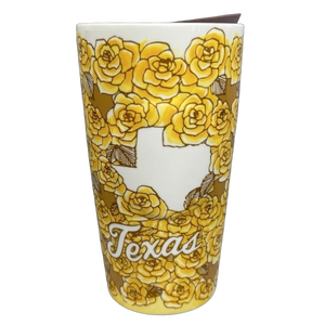 Surrounding this and wrapping around its exterior surface are any yellow roses of Texas.