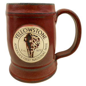 Above this is etched "YELLOWSTONE" and below it is "AMERICA'S FIRST NATIONAL PARK." Etched to the left and right of the geyser is "Est. 1872."