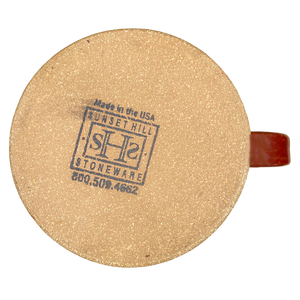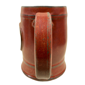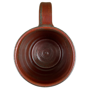 This is a beautiful oversized pottery style mug that features a raised circular area on its front surface.