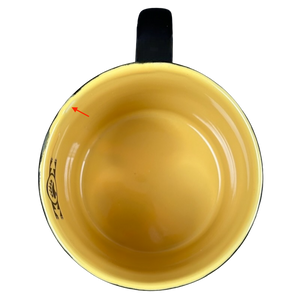 There is a manufacturing imperfection just under the rim on the yellow surface. It's a small grooved line about 1/4" long where the yellow paint is absent, please see the red arrow pointing to this in the second to last photo.