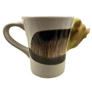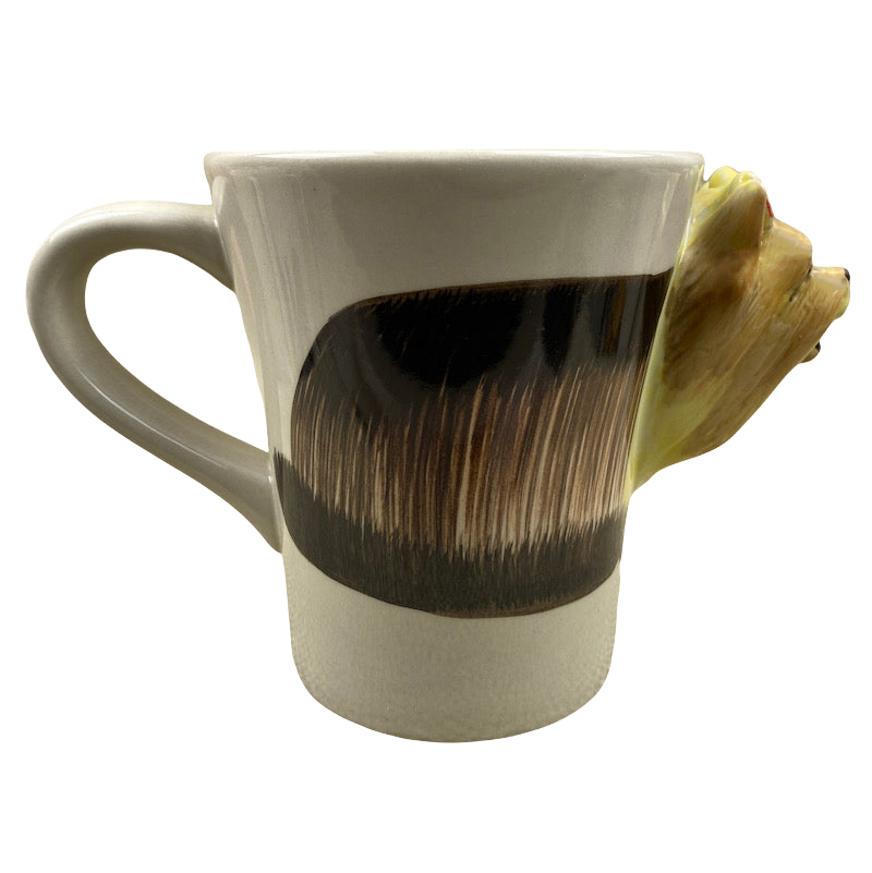 Features a 3D figural head of a Yorkshire Terrier protruding out of the right side of the mug.
