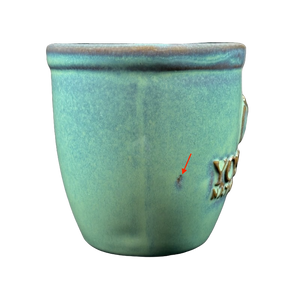 - There is a manufacturing imperfection on the exterior surface opposite the handle, please see the red arrow pointing to this in the fourth photo.