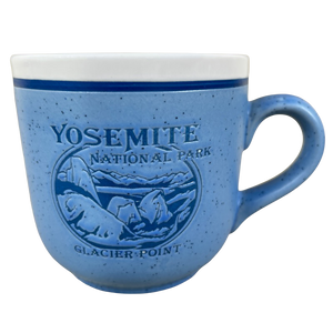 This shorter mug features etched artwork on its front surface depicting Glacier Point in Yosemite National Park.