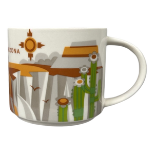 Arizona is printed on the front upper surface horizontally and STARBUCKS is printed on the rear left side vertically near the handle.