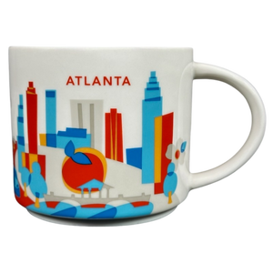 ATLANTA is printed on the front upper surface horizontally and STARBUCKS is printed on the rear left side vertically near the handle.