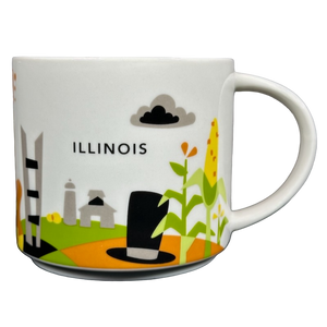 ILLINOIS is printed on the front upper surface horizontally and STARBUCKS is printed on the rear left side vertically near the handle.