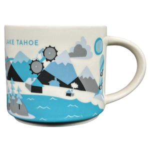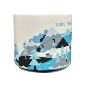 LAKE TAHOE is printed on the front upper surface horizontally and STARBUCKS is printed on the rear left side vertically near the handle.