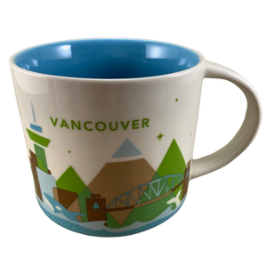 Vancouver is printed on the front upper surface horizontally and Starbucks is printed on the rear left side vertically near the handle.