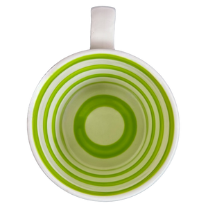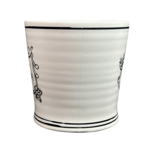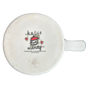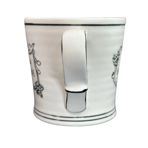 This mug has a fancier than average handle, the sides are finished in black trim similar to that below the rim.