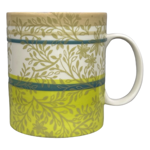 It features floral artwork in shades of green wrapping around its exterior surface and continuing inside to the upper portion of the interior walls.